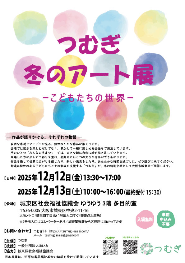 子どもたちの自由な発想と表現を大切にした「つむぎ 冬のアート展」を開催します。