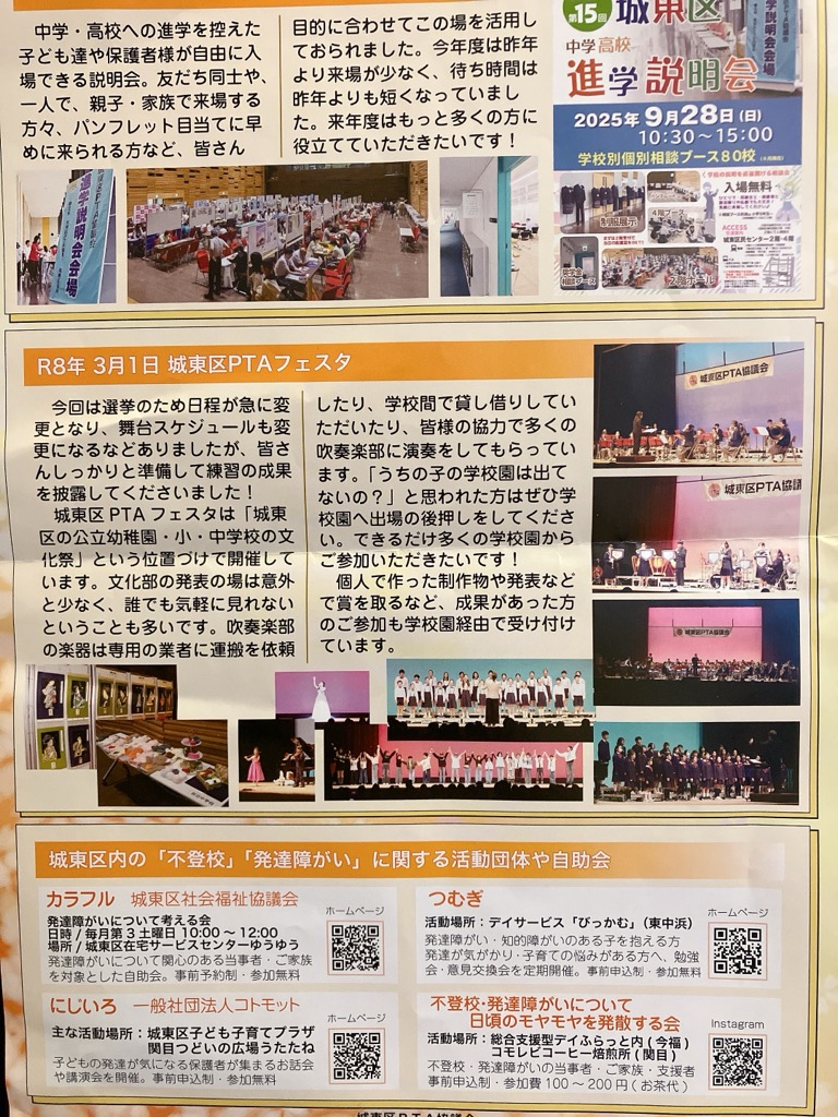 この度、令和8年3月に発行された城東区PTA協議会の広報紙「じょうとう」にて、城東区内の「不登校」「発達障がい」に関する活動団体として「つむぎ」をご紹介いただきました。