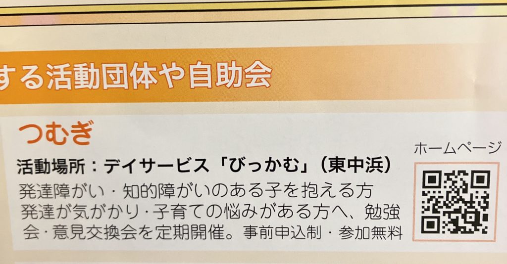 紙面の下段「城東区内の『不登校』『発達障がい』に関する活動団体や自助会」のコーナーにて、私たちの活動場所や内容、そしてホームページへのQRコードを掲載していただいております。